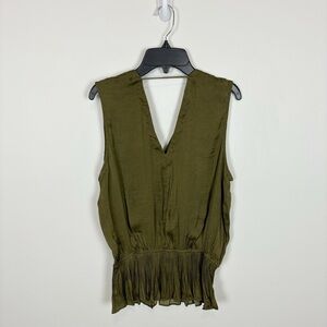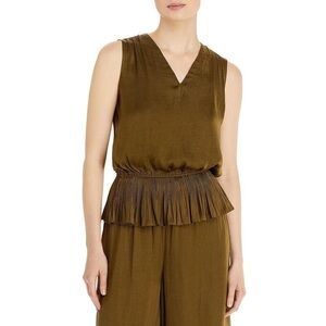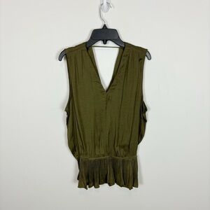 T TAHARI V-Neck Blouse with Peplum Hem in Oak Moss Size M
