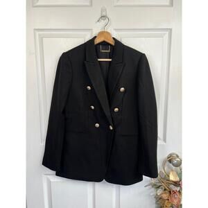 TAHARI Double-breasted Blazer Womens Size 6 Black Classic Tailored Gold Embossed Buttons Professional Chic