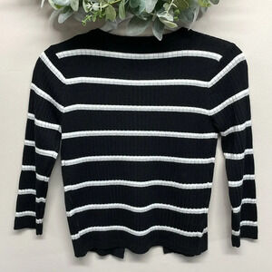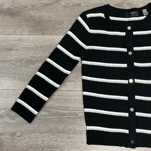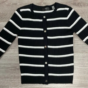 T Tahari 3/4 Sleeve Button Front Cardigan Ribbed Striped XS