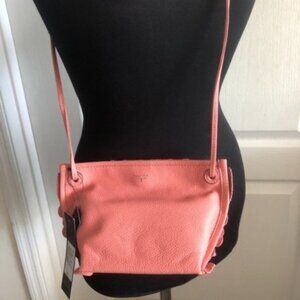 T Tahari 3D Greta Leather Flowers Small Crossbody Handbag Salmon Pink Purse
