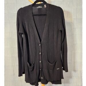 T Tahari $68 Small Black Rayon Stretch Button Notched Cuff Cardigan Pocket