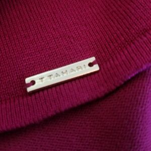 Elevate your wardrobe with the T Tahari bright pomegranate colored sweater, designed for women in size 2X. The asymmetrical cut and draping in the back add a touch of elegance, while the simplistic style is complemented by a vibrant pop of color. Perfect for adding a bold statement to any outfit, this sweater is a must-have for the fashion-forward woman.