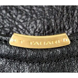 T Tahari BLACK GENUINE LEATHER THREE COMPARTMENTS BUSINESS TOTE SHOULDER BAG
