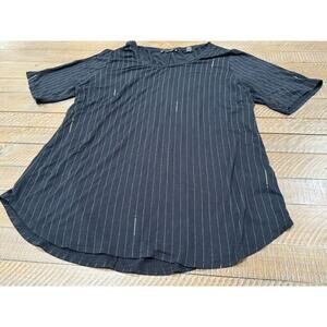 T Tahari Black Horizontal Stripe Basic T-Shirt Rayon Blend - Size L