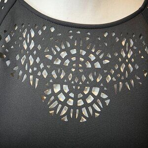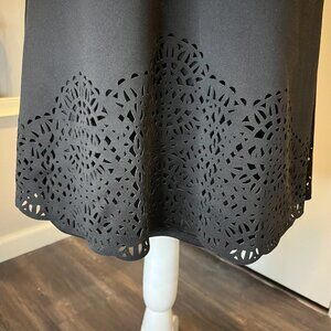 T Tahari Black Laser Cut Scallop Trim Midi Dress, Size 4