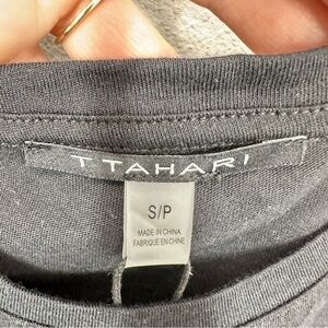 T Tahari Black Modal Eyelet Flutter Sleeve Classic Summer Tee Feminine NWT