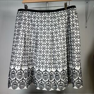 T. Tahari Black / White Embroidery Pleated Lined A-Line Skirt Size 14