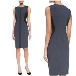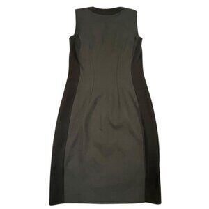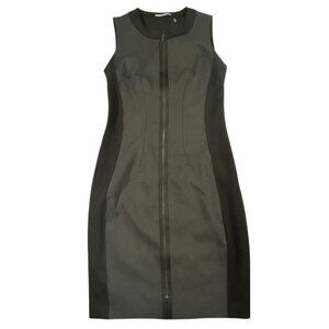 T Tahari Black/Charcoal Dorothy Color Block Front Zip Sheath Dress SIZE-4