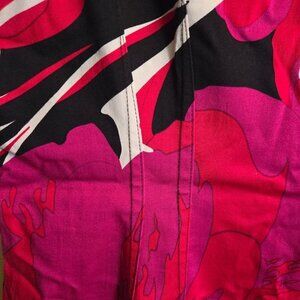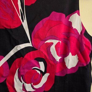 T Tahari Stunning black floral shift dress. Black background, hot pink, red and white large Floral print. Size 6. Fully lined, awesome exposed zipper detail on back. Good Pre-Owned Condition
