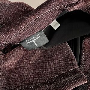Add instant polish and understated glamour to your wardrobe with this T Tahari metallic blazer. Crafted in a rich bronze shimmer fabric, this tailored jacket catches the light beautifully without feeling over the top. The structured fit and single-button closure make it a versatile piece — ideal for workwear chic or evening events alike.