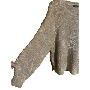 T Tahari Champagne Metallic Eyelash Knit Pullover Sweater Plus Size 2X NWT