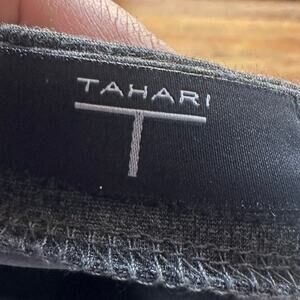 Sophisticated T Tahari midi pencil skirt in a dark gray charcoal shade. Sleek, polished silhouette perfect for work, events, or elevated everyday style. Quality fabric with a smooth, flattering fit. Gently worn and in excellent condition — a timeless, versatile piece that pairs effortlessly with blouses, blazers, or knits.