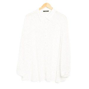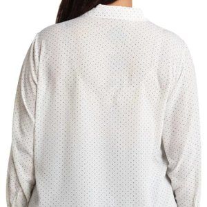 T Tahari Collared Long Sleeve Button Front Shirt White Polka Dots 1X