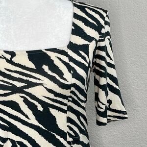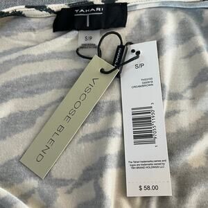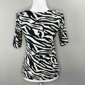 T Tahari Cream Black Zebra Animal Print Short Sleeve Square Neck Top NWT Small