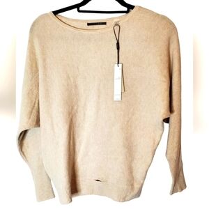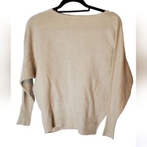 Buttery soft, delicate crewneck sweater that sits fitted at the waistline and a wider Oversized fit at the chest for a comfy cozy look. Ribbed at waist and from forearm to wrist. Small tear at seam on waist, approximately 2". Can easily be sewn and will not be noticeable. Price reflects.