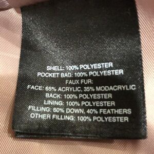 Missing the detachable fur trim but otherwise in excellent condition no stains rips or fading. Full zip, zippered pocket, knee length quilted down insulated jacket.