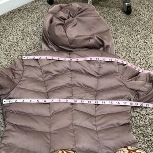 T Tahari Down Puffy Coat Size Small Taupe Knee Length Puffer