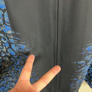 T Tahari Dress 12 Black Blue Abstract Pattern Mesh V-Neck A-Line Fit N Flare