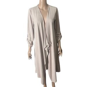 T Tahari Faux Suede Cardigan Duster Jacket Womens Medium Open Front Pale Pink