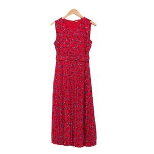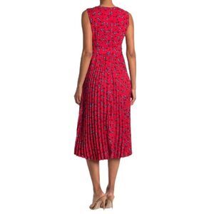 T Tahari Floral Sleeveless Belted Pleated Midi Dress