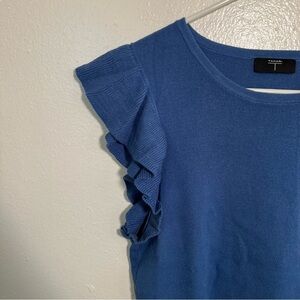 T Tahari Flutter Sleeve Sweater Knit Top Blue L