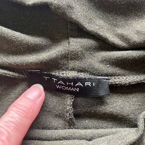 Stay cozy and stylish with this lightweight T Tahari sweater featuring a flattering cowl neck and 3/4 sleeves. The high-low hem adds a modern touch. In excellent condition from a smoke-free, pet-free home.