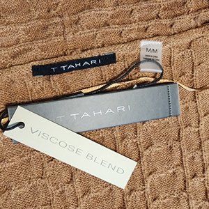 T Tahari Knee Length Brown Cable Knit Cardigan Sweater | Size Med