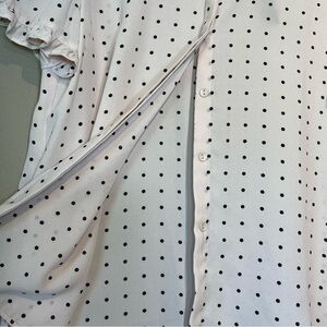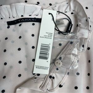 T Tahari Light Blush Spaced Dot Short Sleeve Blouse Size S NWT Ruffle Polka Dot