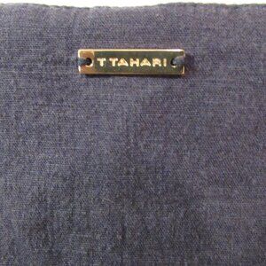 T Tahari Linen Blend Deep Navy Jumpsuit Zip Front Relaxed Crop Wide Leg
