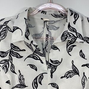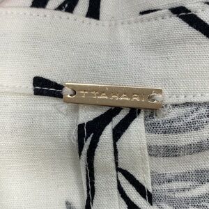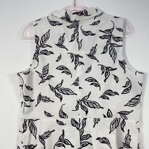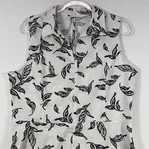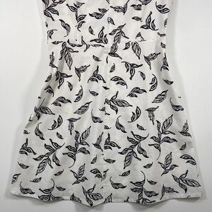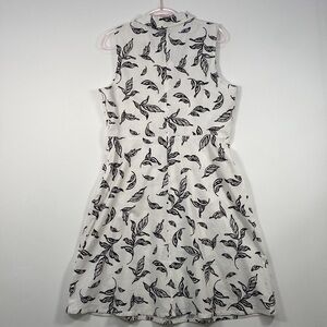 T Tahari Linen Blend Fit & Flare Sleeveless Dress Women's M Leaf Print White