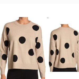 T Tahari Long Sleeve Crewneck Pullover Khaki Black Polka Dot Sweater Size XL