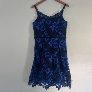 T Tahari Lucile Dress Blue Black Floral Lace Mini Dress Formal Wedding Guest 8
