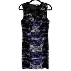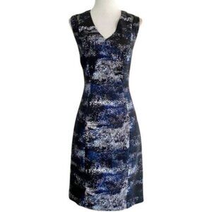 T Tahari Mesh Inset Sleeveless V-Neck Black Pattern A-Line Woven Dress Size 6
