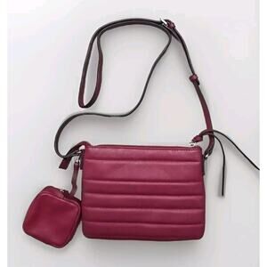 T Tahari Metro Crossbody Bag Leather Deep Red With Side Pouch Tassel