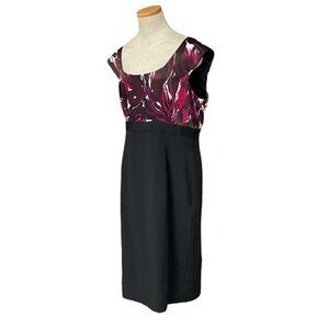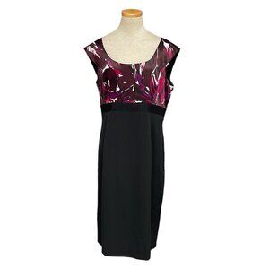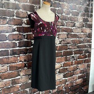 T Tahari Midi Dress Short Sleeve Floral Side Zip Red Size X Large XL