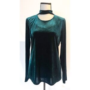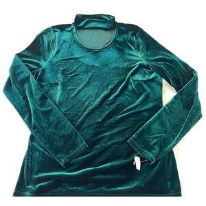T Tahari Mock Neck Long Sleeve Top | Emerald Green Velvet Irena Knit, NWT