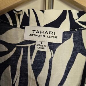 T Tahari Navy & White Leaf Print Tiered Dress Size Large NWOT