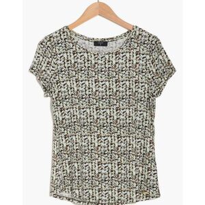 Women’s Short Sleeve T Tahari Crewneck T-Shirt Green And Brown Patterned Stretchy Fabric Size Extra Small