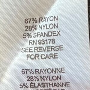67% rayon, 28% nylon, 5% spandex
