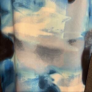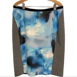 Beautiful abstract blue panel surrounded be grey knit scuba pencil skirt.
