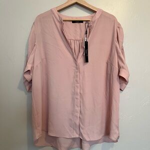 T Tahari Pink Blouse with Cuffed Sleeves and Mandarin Collar in Light Blush NWT