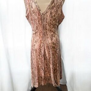 T Tahari Pink and Brown Sleeveless V-Neck Midi Sundress
