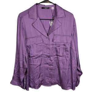 T. Tahari Plus Size Airflow Boxy Long Sleeve Satin Camp Shirt Purple SZ 1X NWT