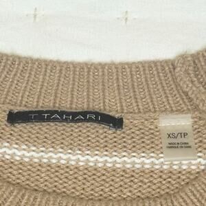 T. Tahari Saddle Stripe Short Sweater Women's XS | Beige & White | EUC