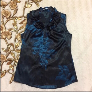 T Tahari Sleeveless Ruffle Neckline Blouse Size S