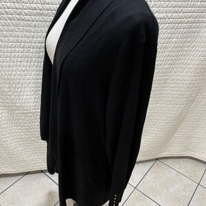 T Tahari Black Open Front Drape Cardigan Gold Stud Sleeve Women Size L
