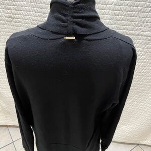 T Tahari Sweater L Black Drape Cardigan Studs Neutral Minimalist Preppy Mature