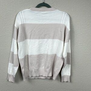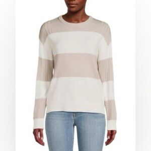T Tahari Thick Stripe Colorblock Pullover Sweater White Beige Sz M