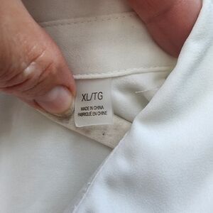 T Tahari White Button Down Blouse Size XL with Black Trim