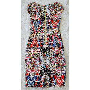 T Tahari Women's Skyler Colorful Kaleidoscope Cap Sleeve Midi Shift Dress. Size 2
